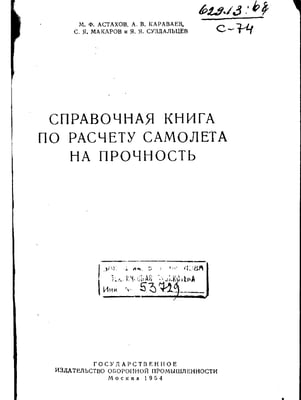 Астахов М.Ф., Караваев А.В., Макаров С.Я., Суздальцев Я.Я. Справочная книга по расчёту самолёта на прочность. -М.: