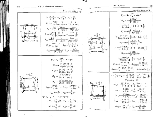 Стр. 322 - Таблица результатов перемножений эпюр на балках;