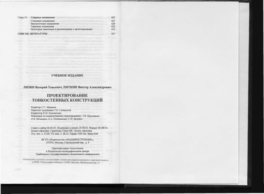 Лизин В. Т., Пяткин В.А. Проектирование тонкостенных конструкций. М., "Машиностроение", 2003, 448 с.