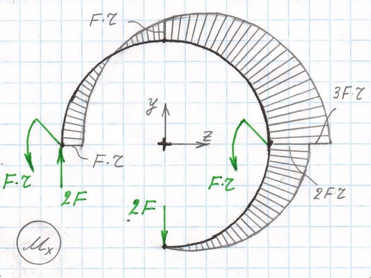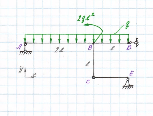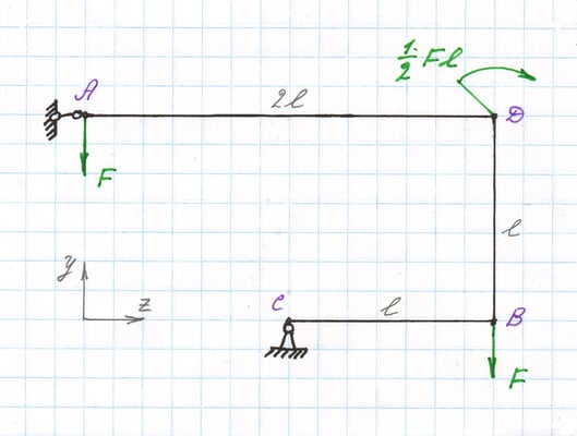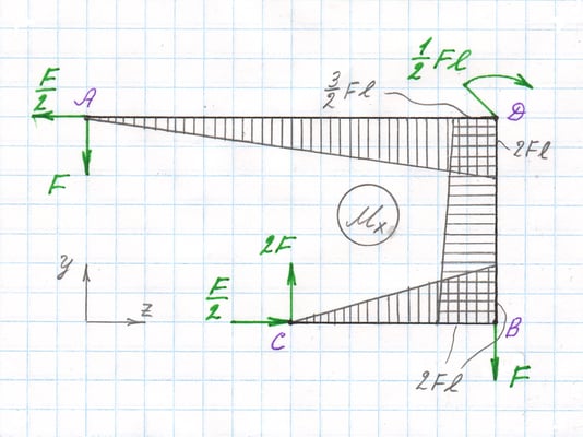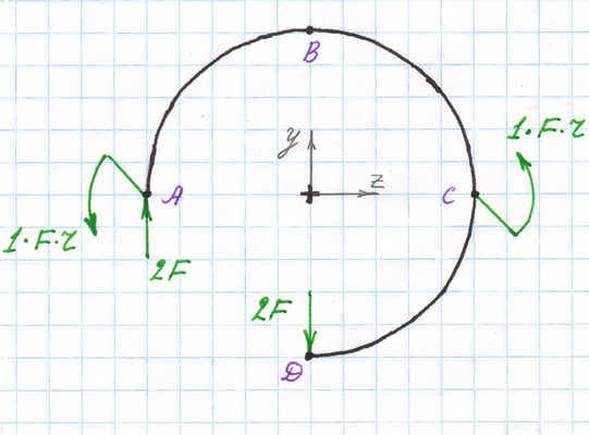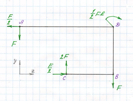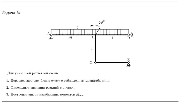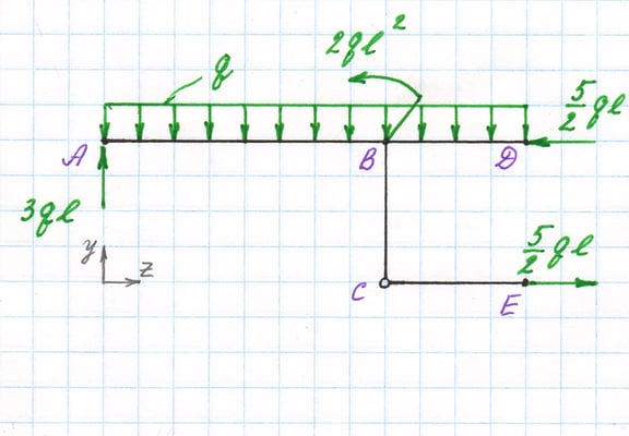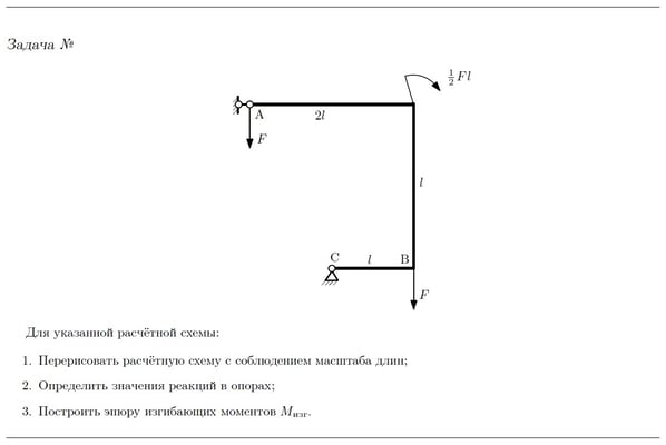Расчётная схема. Моменты изображаются своими векторами - двуглавыми стрелками. Нагрузки подписываются коэффициентами перед формулами. На минусы не обращайте внимания.