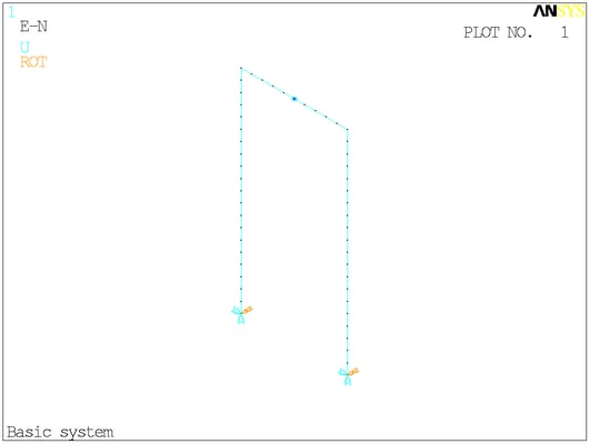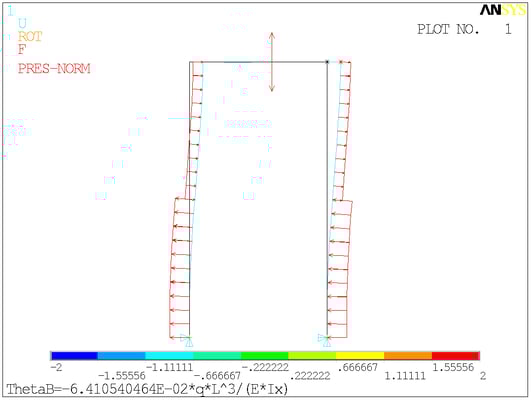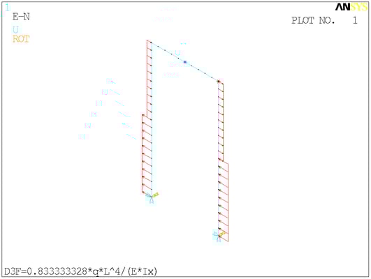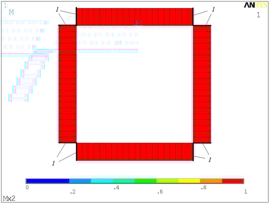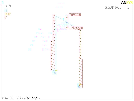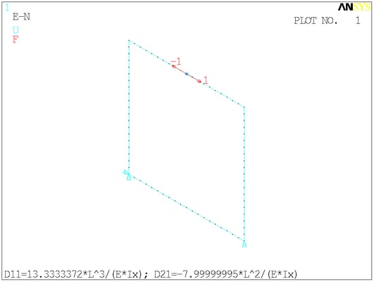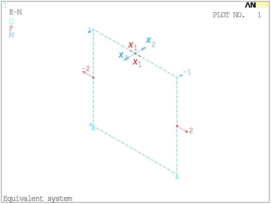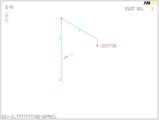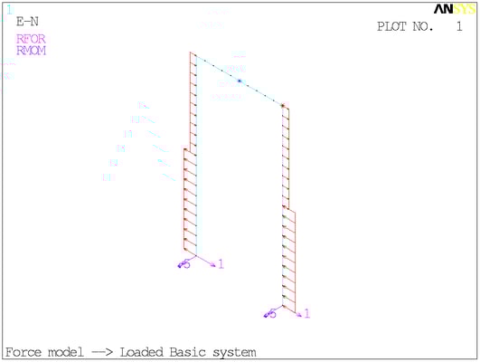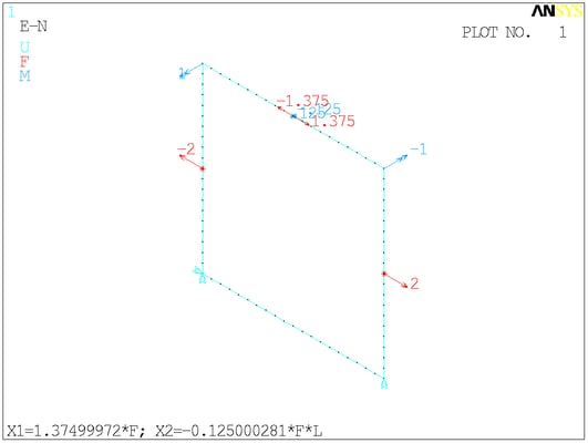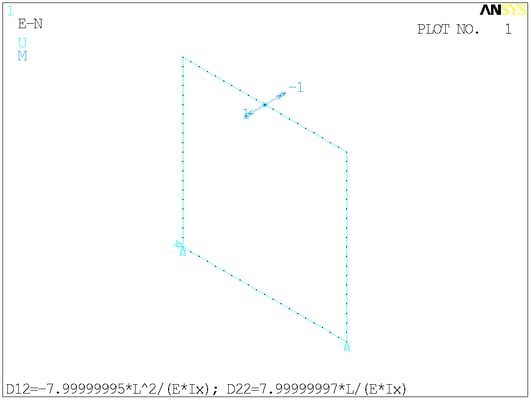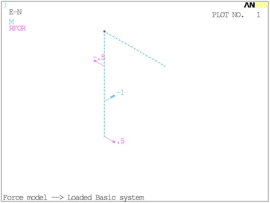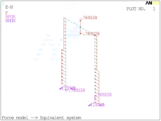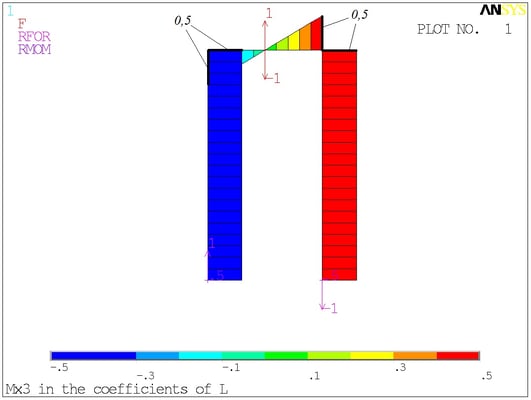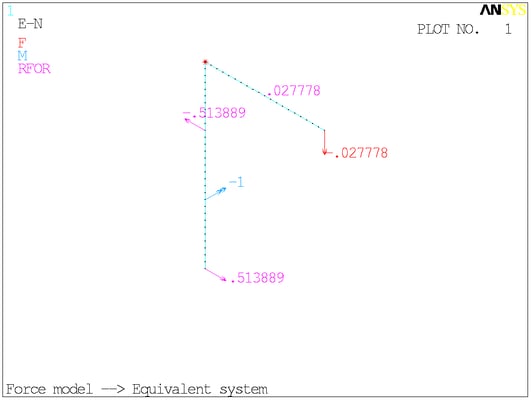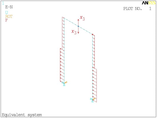 Расчётная схема. Сосредоточенные моменты в ANSYS отображаются своими векторами - двуглавыми стрелками. На минусы внимания не обращайте.