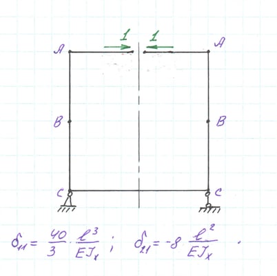 Основная система с единичной силой на месте отброшенной связи.