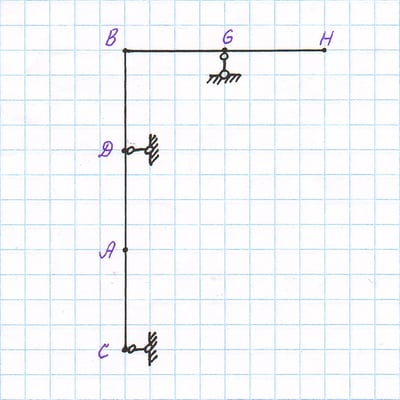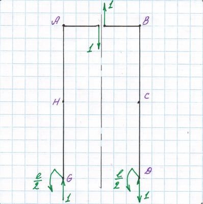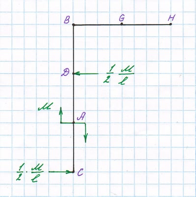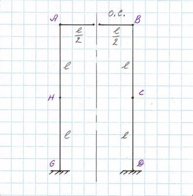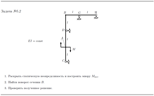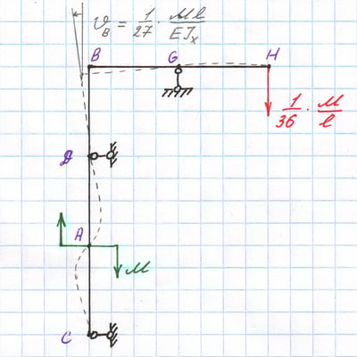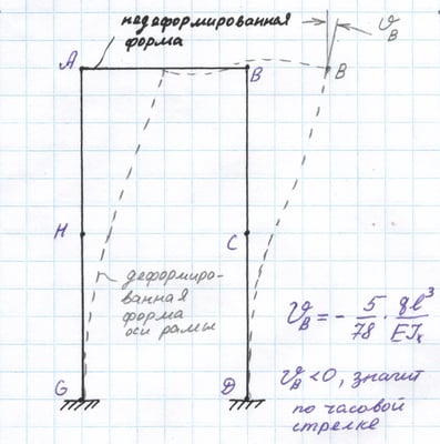 Форма изогнутой оси нагруженной рамы. Угол ϑВВ взаимного разворота точек оси, отмеченных звёздочками.