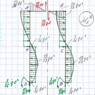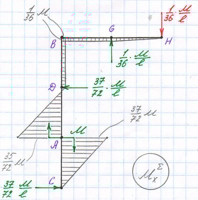 Эквивалентная система, итоговая эпюра Mx.