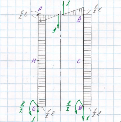 Основная система с единичным моментом по направлению реакции X2, эпюра Mx2.