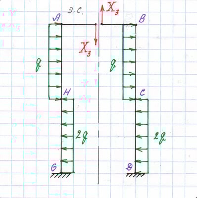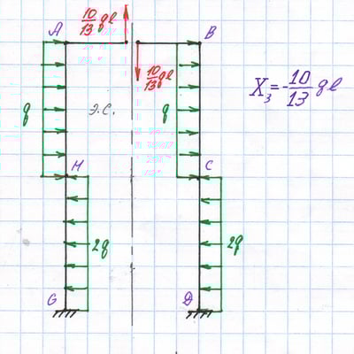 Эквивалентная система, вычисление реакции отброшенной связи X3 из канонического уравнения.