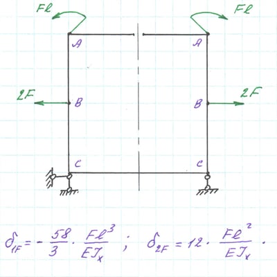 Основная система с внешней нагрузкой, коэффициенты δ1F и δ2F системы канонических уравнений.