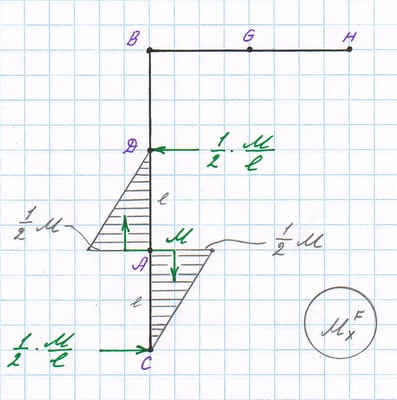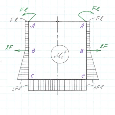 Основная система с внешней нагрузкой, эпюра MxF.