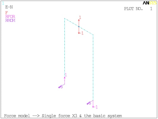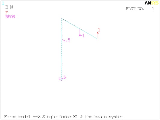 Основная система с единичной силой на месте отброшенной связи, силовая схема.