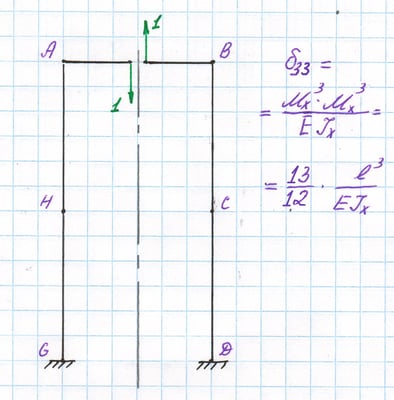 Основная система с единичной силой на месте отброшенной связи и коэффициент δ33 канонического уравнения.